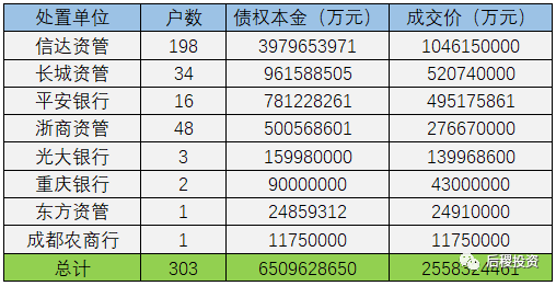 另外需要補(bǔ)充說(shuō)明的是:本次統(tǒng)計(jì)四川省2019年度成交公告共計(jì)539戶,其中債權(quán)本金顯示為未透露狀態(tài)的有71戶。未透露成交記錄的明細(xì)如下:
